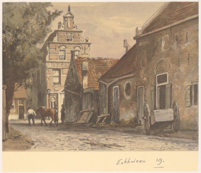 - Diaconie-Armenhuis, gesloopt 1879, naar toestand in 1874 1 topogr. prent: litho, ingekleurd met waterverf en dekwit; 222 x 291 mm. r.o., in de steen gekrast: P.A. Schipperus 1913 222 x 291 mm, Noord-Hollands Archief / Provinciale Atlas - Prenten en Tekeningen, NL-HlmNHA_359_000956_K