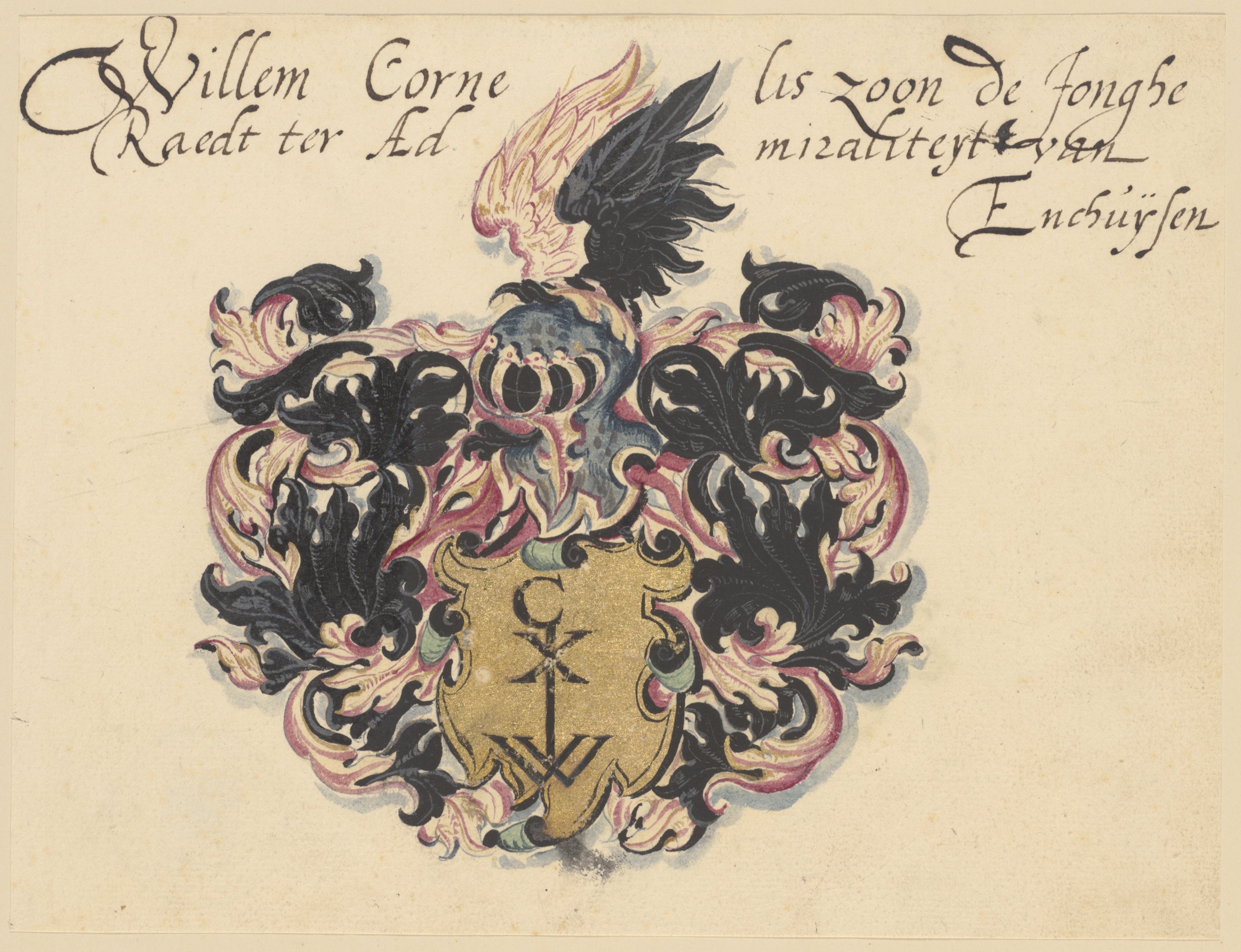 - Wapentekening van Willem Corneliszoon de Jonghe, raad ter admiraliteit van Enkhuizen, Noord-Hollands Archief / Provinciale Atlas - Historieprenten, NL-HlmNHA_480_001264_K