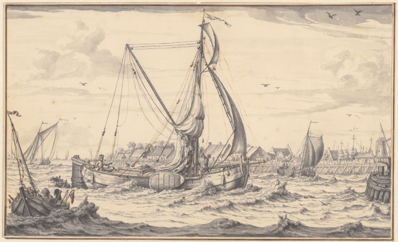 - Scheepstype; Friese-tjalk ; stadspoort: Keetpoort 1 topogr. tek.: pen in bruin, penseel in grijs, over schets in grafiet; blad 198 x 329 mm. verso l.o.: Piter Idserdts 192 x 321 mm, Portier, Pieter Idserdts (1698-1781), Noord-Hollands Archief / Provinciale Atlas - Prenten en Tekeningen, NL-HlmNHA_359_001090_K